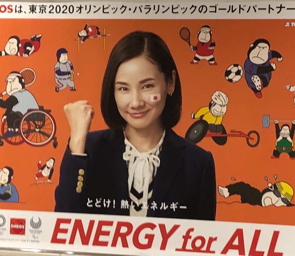 The advertising posters for ENEOS found in train stations feature disabled people, and specifically wheelchair users.