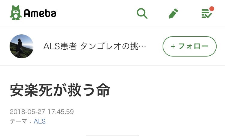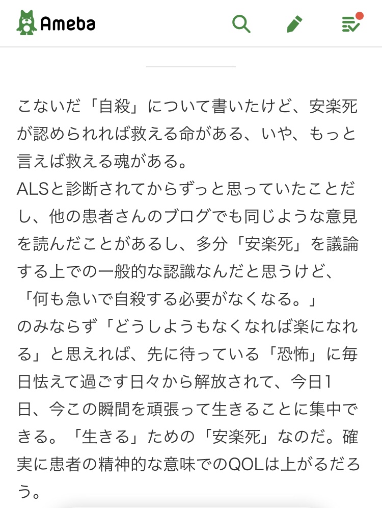 On May 27 2018, Hayashi wrote a blog post entitled ‘Life saved by Euthanasia‘: Hayashi seems to suggest that a person who is considering ending their life because of a condition like ALS, might have better mental health if they don’t “have to hurry and commit suicide.”