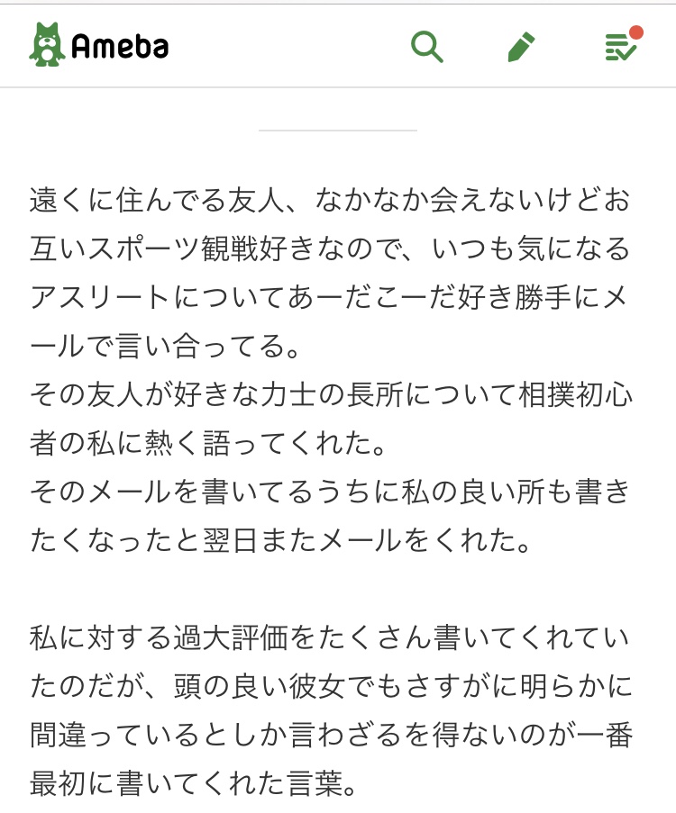On September 23 2018, Hayashi posted a blog titled “Beautiful soul”. In it Hayashi relays a story about emailing someone about a shared love of sumo, during which the email correspondent describes Hayashi as a ‘beautiful soul’ and Hayashi wonders what that might mean: