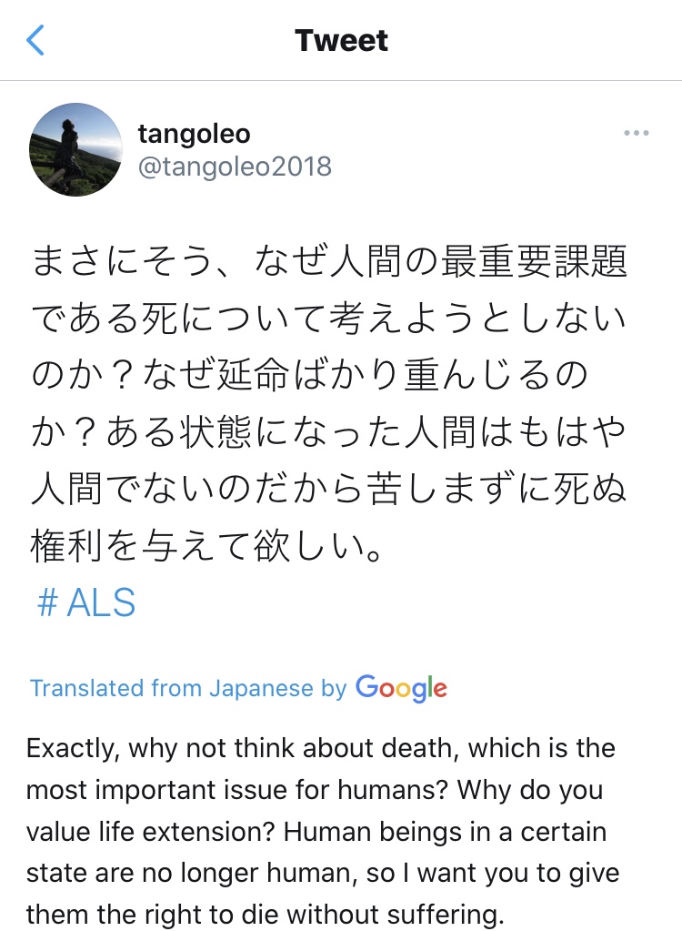 0 comments on ““Why do you value life extension?” – asks the late Yuri Hayashi, ALS patient”