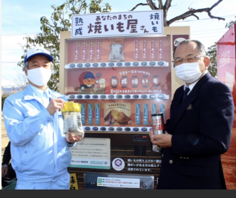 OITA– A vending machine for baked sweet potatoes has been set up at the Oita Matsuoka Parking Area (PA, Oita City) on the uphill route of the East Kyushu Expressway.