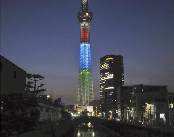 TOKYO – Tokyo Skytree illuminates the night sky in the capital, shimmering in the Paralympic symbol colors of red, blue and green as a backdrop for the ongoing Tokyo Games.