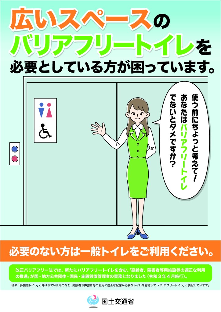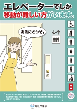TOKYO – The Ministry of Land, Infrastructure, Transport and Tourism has established appropriate facilities and equipment such as barrier-free toilets, parking facilities for wheelchair users, elevators in passenger facilities, and priority seats in vehicles so that those who truly need them can use them when they need them. The Ministry will carry out a campaign to promote the use of these facilities and promote “barrier-free minds.”