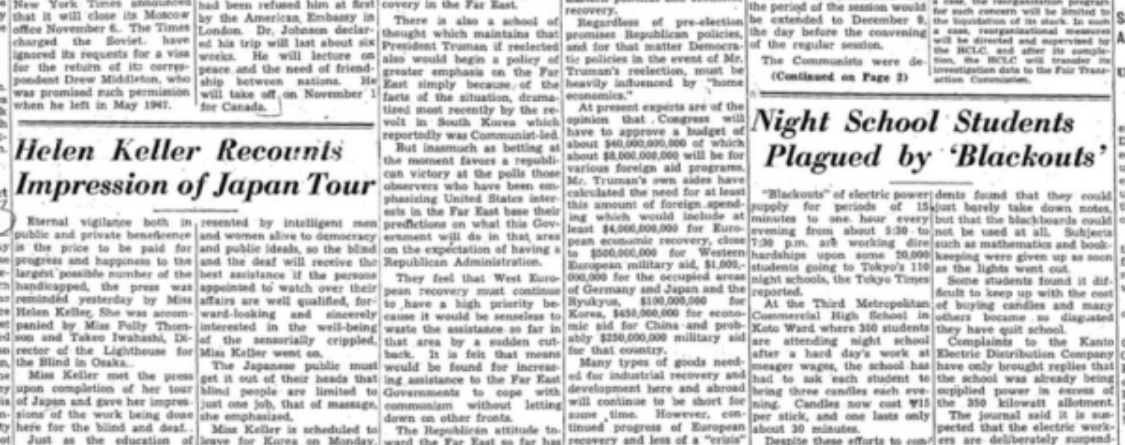 Episode Notes: https://barrierfreejapan.com/2023/10/07/the-japan-times-1948-helen-keller-recounts-impression-of-japan-tour/