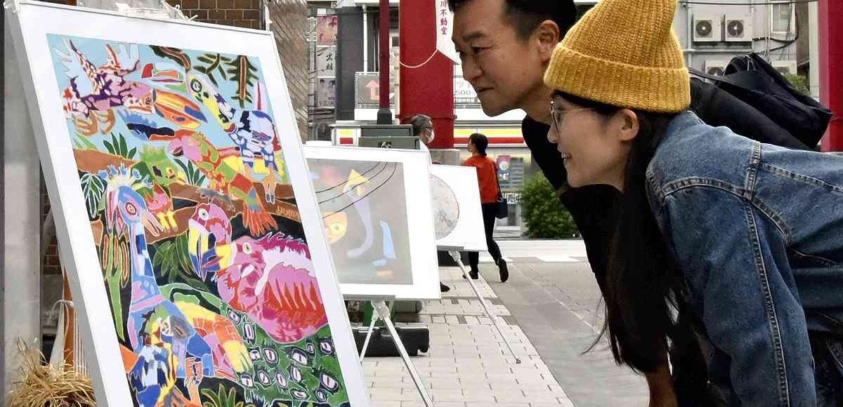 TOKYO – Shopping areas and other locations in Tokyo’s Koto Ward have turned into an open-air art museum as part of a civic art festival in which about 800 paintings by artists with disabilities are on display.