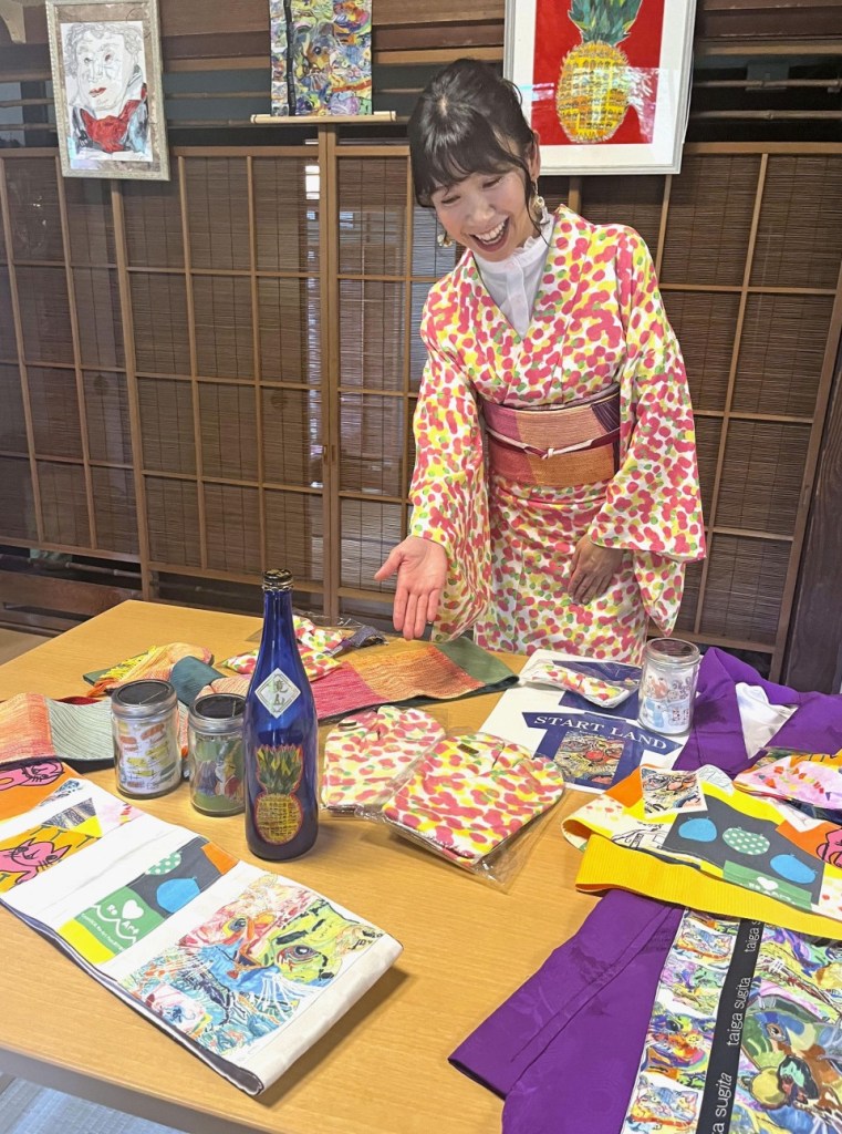 In July 2023, ReArt held a launch event featuring prototype “yukata” casual summer kimono and other items with designs by the artists. In April, they collaborated with a local sake manufacturer to include a pineapple design illustrated by a disabled artist on a summer limited edition sake bottle.