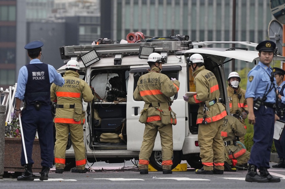 Police officers and firefighters were seen inspecting the area in front of the LDP’s headquarters, while an entrance to the premises of the prime minister’s office was cordoned off with tape.