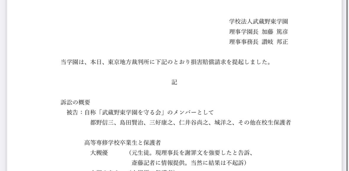 The lawsuit claims defamation over false information reportedly provided to the ‘Weekly Bunshun’. The amount claimed includes 33 million yen specifically for damages to the current Chairman of the Board and the school has indicated that the total amount of damages sought may increase.