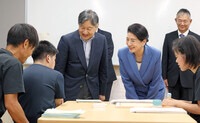 Also at the school, the Imperial couple talked with officials of Biwako Harness no Kai, a group of users of guide dogs in the same city.