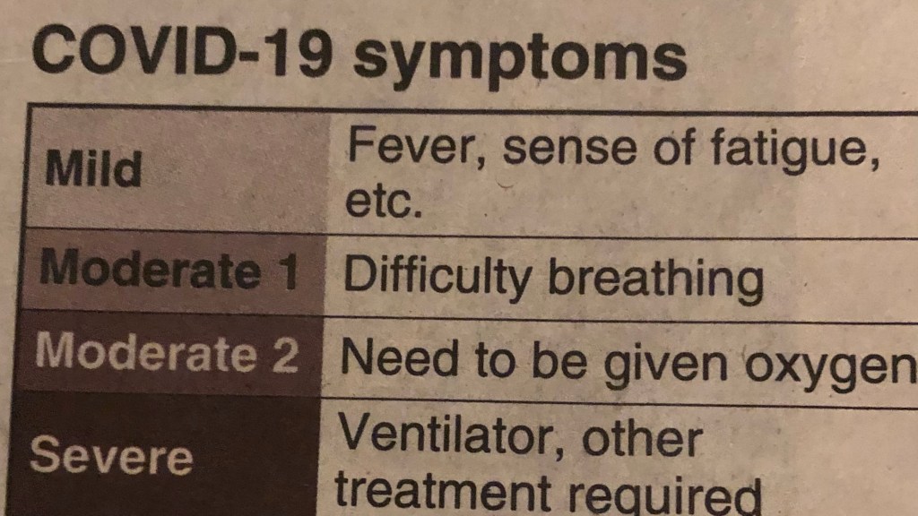 According to the health ministry’s guidelines, moderately ill COVID-19 patients are divided into the Moderate I and II groups. Moderate I patients have a short breath and show signs of pneumonia, while Moderate II patients suffer severer symptoms and need oxygen administration. The new policy would keep Moderate I patients at home.
