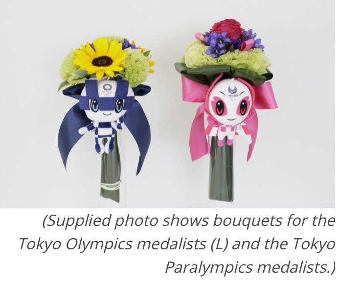 Flower bouquets with a stuffed doll in the shape of Someity, the Tokyo 2020 Paralympic mascot, will be handed to medal-winning athletes